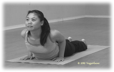 In Sanskrit language Bhujanga means a cobra hence the name, mostly used in the West. In Bhujangasana the body is facing downward while the upper body is curling up and back resembling a cobra reared up on its caudal support with the hood fully expanded ready to strike. This pose is mostly practiced as the first in the series of backward bending asanas followed by Locust and Bow postures. It is also the most well known backward bending pose in hatha yoga. The Cobra pose destroys all diseases, increases body heat and awakens kundalini. Kundalini is the energy of consciousness, the awareness of the higher self, our emanation of infinity, the energy of the cosmos within each individual. Therefore a quite advanced posture - mentally, energetically and spiritually.