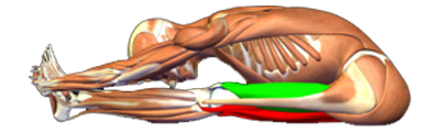 Once you are fully in the forward bend you can re-extend the elbows. There are several ways to do this. You can clasp your hands around the soles of the feet, or turn the back of one hand to the soles and grip its wrist with the other hand.