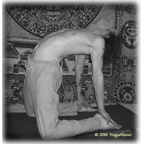 The Camel Pose is above all else a posture for opening the heart. The heart is a muscle like any other, and thus needs to be opened and nourished. The heart chakra, Anahata Chakra, in sanskrit means unbeaten or unstruck. Often interpreted as, "unstuck sound," and it is from this chakra that the inner sound or natural music of the body is said to arise. Part of this chakra's strong association with inner sound is due to its relationship with the heart, which throbs, beats or vibrates to a constant unbroken life-giving rhythm. The scriptures describe that there is a sound which is non-physical and non-empirical, which is transcendental in nature, and that this sound is endless and unbroken in the same way that the heart beats faithfully and continuously from before birth until death. In yoga, the heart center is also known as hriday-akasha, which means 'the space within the heart where purity resides'. This chakra is a very delicate center, directly connected with that part of the brain which is responsible for creativity in the sciences and fine arts.